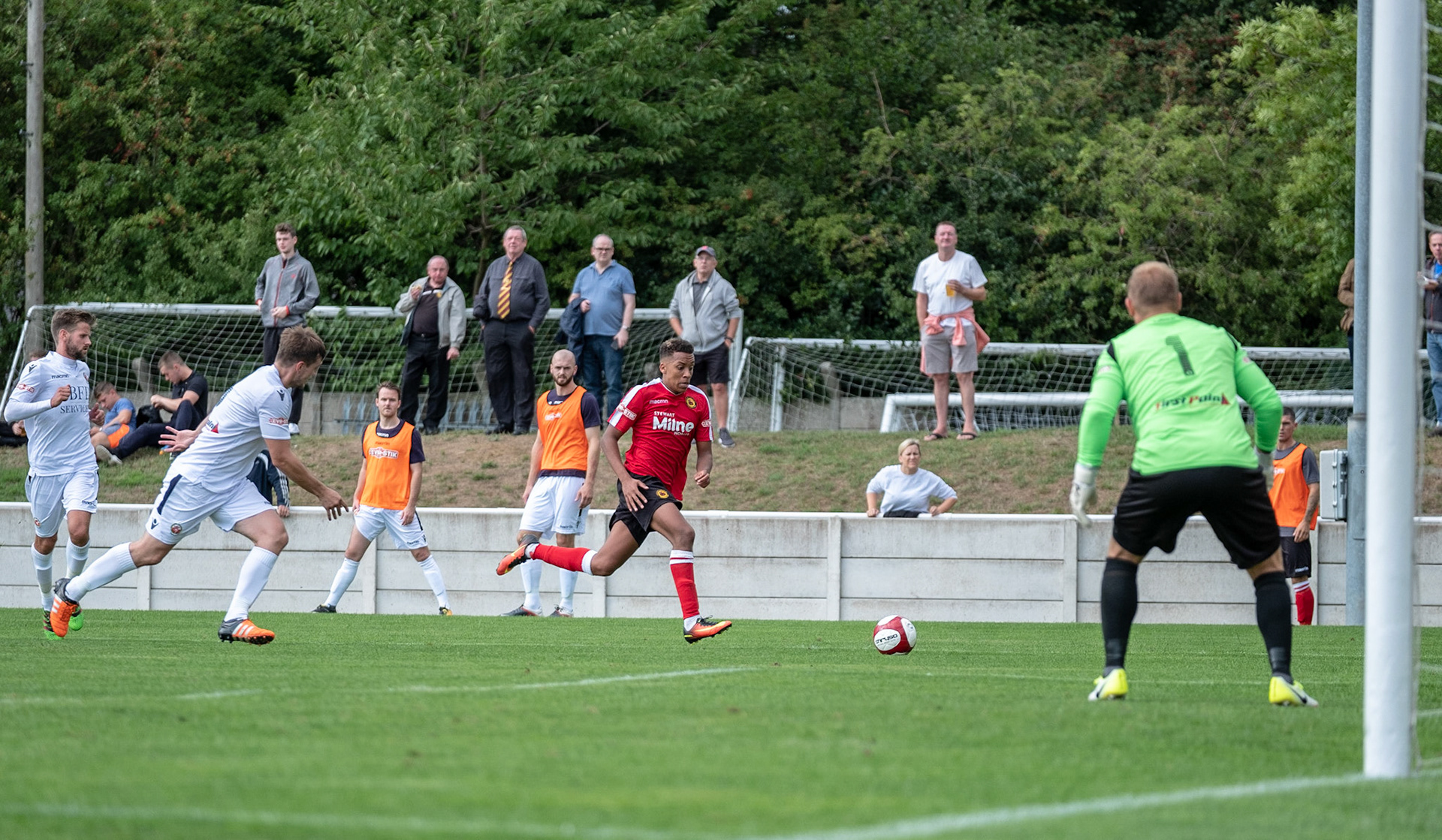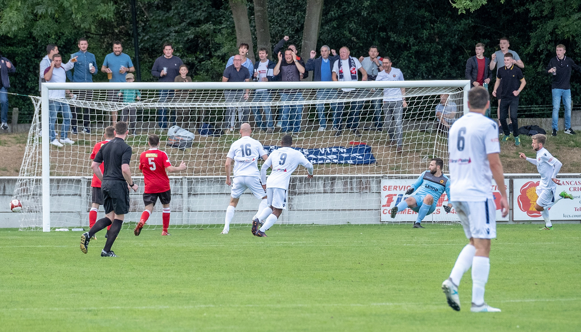 Evostick League West. Matchday 1, final score Trafford FC 2 Prescot Cables 1
